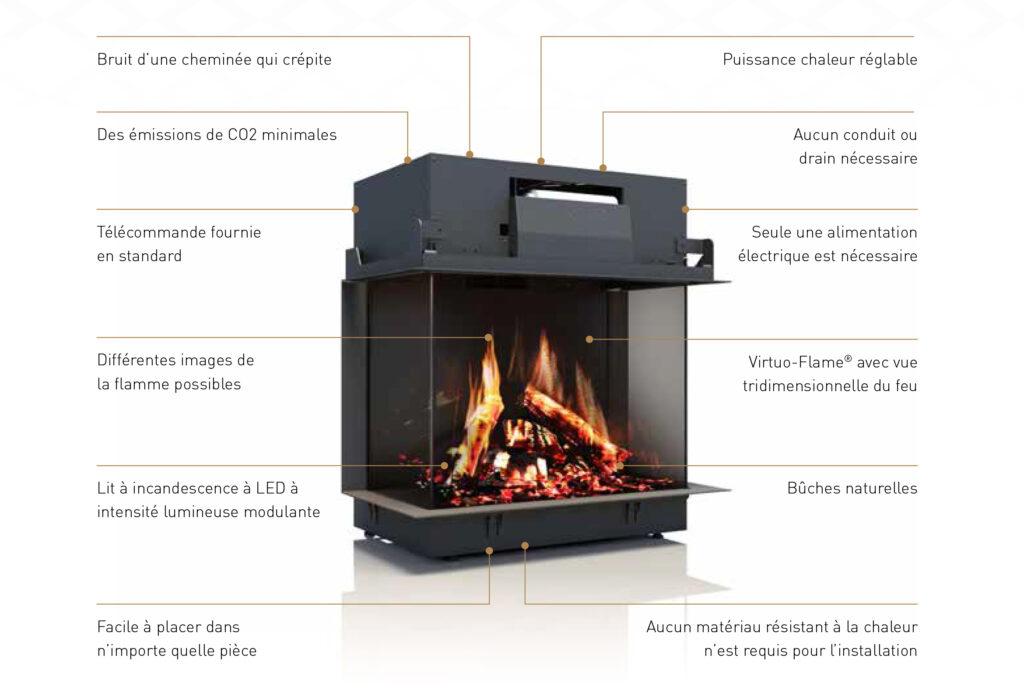 Un jeu de flammes animé, le son du bois qui crépite et qui est merveilleusement chaud quand on le veut. Seul DRU VIRTUO vous donne la sensation d’être assis devant un vrai feu. Il faut le sentir pour le croire !